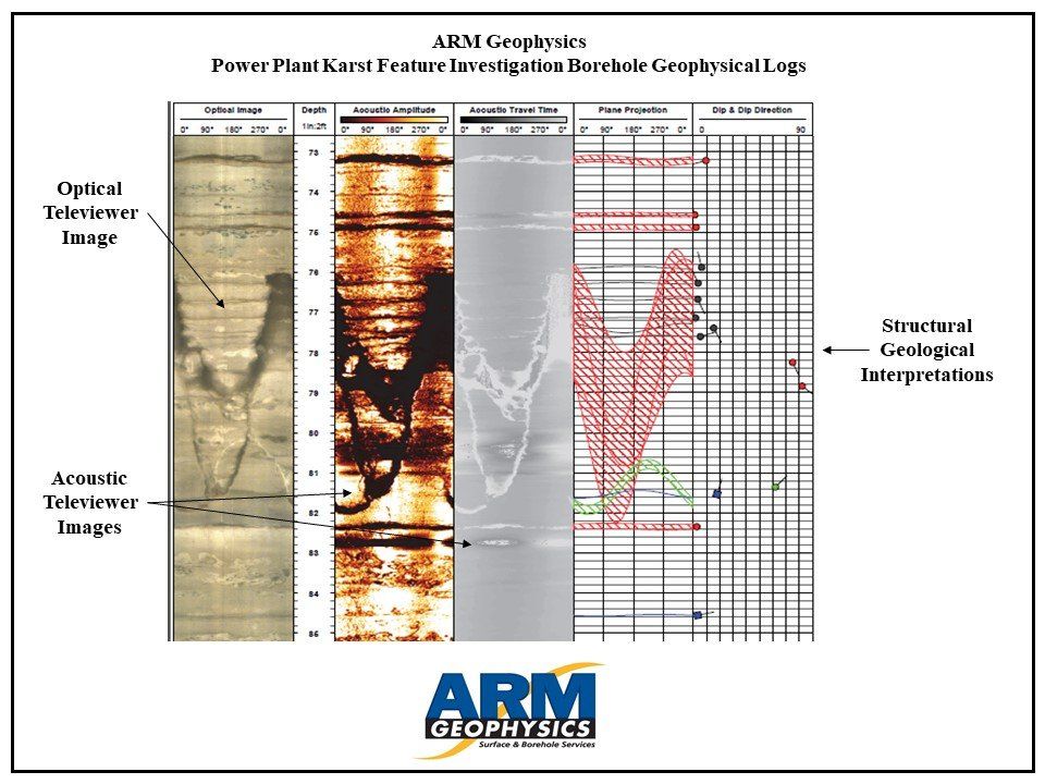 ARM assisted a client with a site-wide karst feature characterization at a large power plant using both borehole and surface geophysical methods. The client’s objective was to identify the relationship between the identified karst features and local groundwater flow beneath and around the power plant.