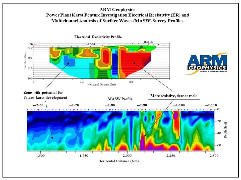 - ARM processed and interpreted these datasets to provide the client with delineation of areas predisposed to future karst feature development and a qualitative and quantitative assessment of the site’s soil and bedrock properties.